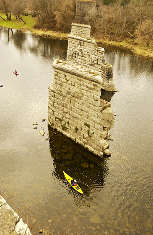 Over 800 archeological sites tell the story of 11,000 years of human history within the Grand watershed. When Europeans arrived, the Neutral people controlled the territory of the Grand. Following the American Revolution, members of the Iroquois Confederacy were granted land in the watershed as a reward for their loyalty to the British Crown. Loyalist settlers soon followed, along with Mennonites from Pennsylvania as well as Scottish immigrants. The Mohawk Chapel in Brantford and the Pioneer Memorial Tower in Kitchener are two national historic sites that recognize these settlers. Adaptive reuse of historical structures like mills and factories along the river has helped to preserve the Grand’s built heritage in areas such as Elora, Fergus, Cambridge and Brantford and Paris.
